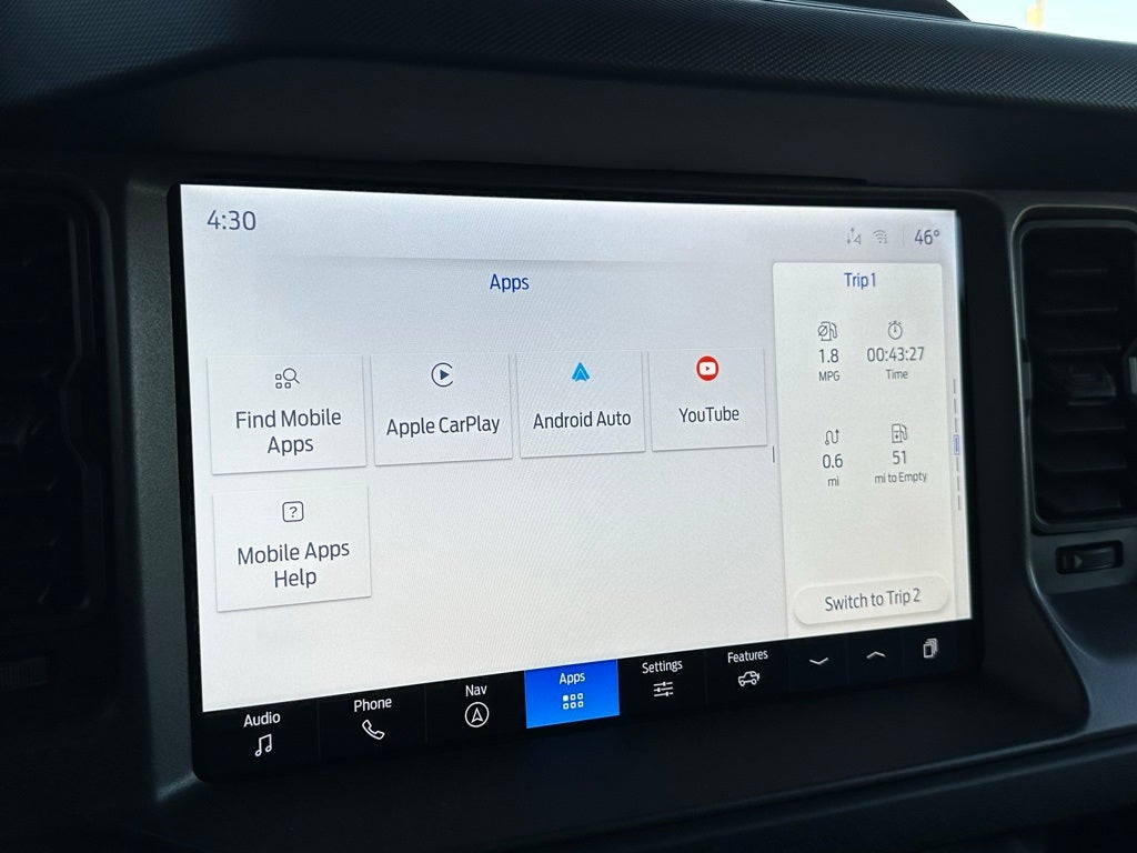 - SYNC 4 -inc: 12" LCD capacitive touchscreen w/swipe capability, wireless phone connection, cloud connected, 911 Assist, wireless Apple CarPlay and Android Auto compatibility, digital owner's manual and conversational voice command recognition
