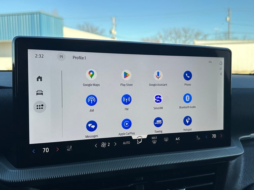 - Radio: B&O Sound System by Bang & Olufsen w/HD -inc: MP3 capable, 980 watt, 14 speakers including subwoofer, speed-compensated volume, SiriusXM w/360L and 3-month prepaid subscription (service is not available in Alaska and Hawaii), Ford digital experience w/13.2" color LCD touchscreen in IP center-stack, Google Assistant, Google Maps and Google Play, pinch-to-zoom capability, 911 Assist, Apple CarPlay and Android Auto wireless compatibility, Note: SiriusXM services require a subscription, sold separately by SiriusXM after the trial period, Your SiriusXM service will automatically stop at the end of your trial unless you decide to subscribe, If you decide to continue service, the subscription plan chosen will automatically renew and be charged according to your chosen payment method at the then-current rates, Fees and taxes apply, See the SiriusXM customer agreement and privacy policy at http://www.siriusxm.com/ www.siriusxm.com for full terms and how to cancel, which includes online methods or calling 1-866-635-2349, Available in the 48 contiguous United States, D.C, and Puerto Rico (w/coverage limits and capable receiver), Visit http://www.siriusxm.com/FAQS for most current service area information, Availability of some services and features is subject to device capabilities and location restrictions, All fees, content and features are subject to change, SiriusXM, Pandora and all related logos are trademarks of Sirius XM Radio Inc, and its respective subsidiaries Eligible 2026 model-year vehicle receive complimentary access to 1-year Ford connectivity connected service plan enabling Google Assistant, Google Maps and Google Play which begins on the new warranty start date. Evolving technology/cellular networks/vehicle capability may limit functionality and prevent operation of connected features.